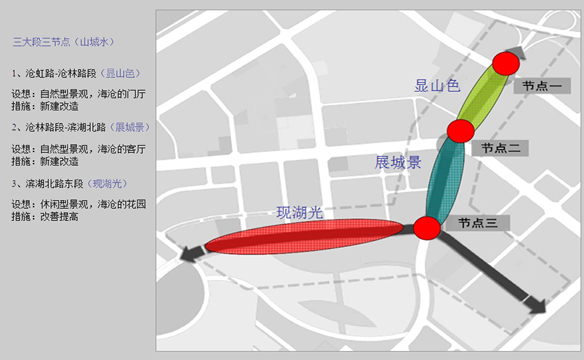 区委、区政府对此高度重视,要求营造风景优美的园林景观,充分展现海沧人文历史内涵、自然景观特色。精品工程的意识,渗透到每一个细节。为了营造风景优美的园林景观,充分展现海沧人文历史内涵、自然景观特色,该项目将揽山、城、湖风光于一身,三大段三节点,可谓各具特色:沧虹路至沧林路段,“显山色”,纵览整个大屏山山际线,层峦叠翠,风景如画;沧林路至滨湖北路段,“展城景”,绿苑小区等新城建设欣欣向荣的景象尽收眼底;滨湖北路至行政中心路段,“现湖光”,海沧湖美景令人心旷神怡。
