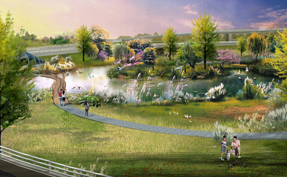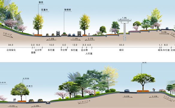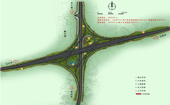 设计将尊重自然,体现在思想上;将爱护自然,体现在行动上;将贴近自然 ,体现在行动上;将自然而然,体现在立交景观设计的升华上。