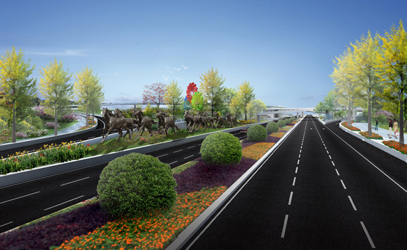设计主题:风生水起 筑巢引凤——和谐景观道 盛世迎宾路