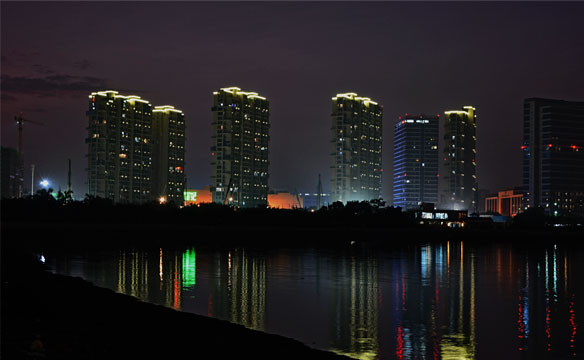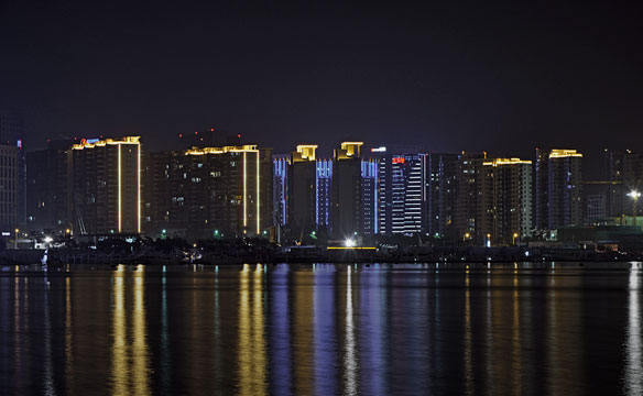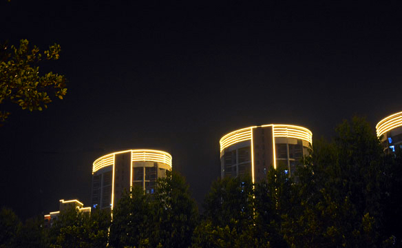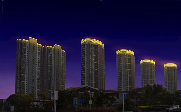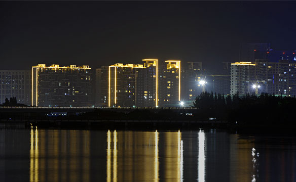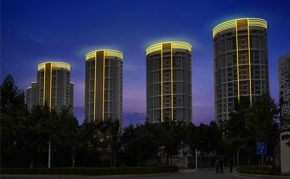 五缘湾被誉为厦门城市“新客厅”,本项目主要沿五缘湾区的第一排高层建筑屋顶和轮廓铺设夜景灯。整体色调设计服从湾区夜景总体规划,主色调暖黄色,勾勒出建筑独特的轮廓。