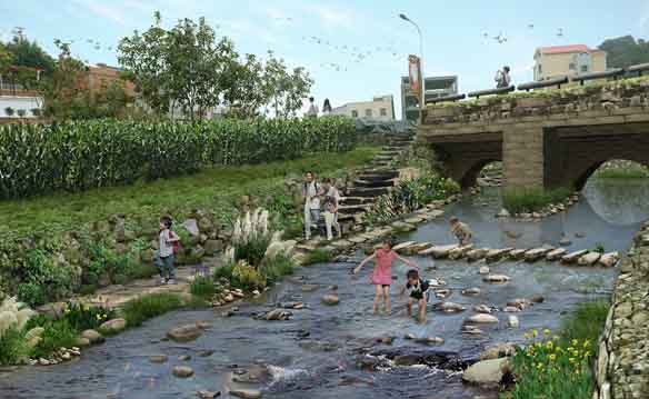 结合安全生态水系建设,截污纳管,因地制宜建设生态溪流,打造生态步道、生态驳岸、会呼吸的挡墙、会呼吸的河床。