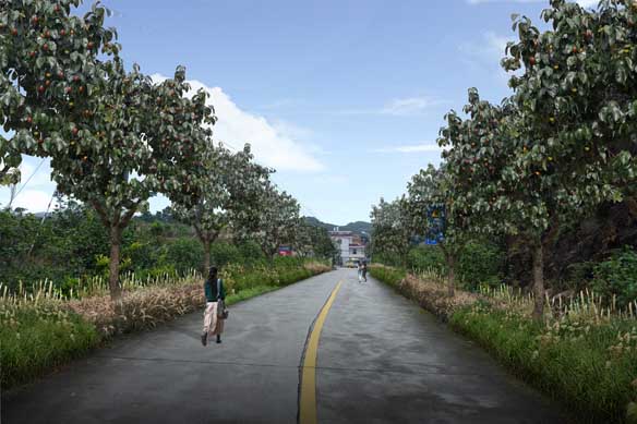 房前屋后,蝉鸣鸟叫,道路两旁果树成林。