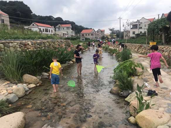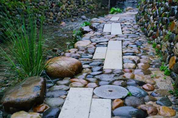 小桥流水,漫步于卵石步道之上,感受不一样的乡愁景观。