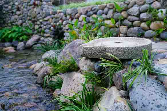 运用出砖入石的手法,结合条石、块石、石磨、碎石、瓦片、竹子等材料去提升最美庭院景观。