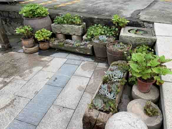 庭院里摆设的老物件结合庭院经济作物种植,给人以质朴、乡土的纯美感受。