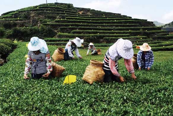 遥望茶山云雾绕,茶香醉心人神往,若隐若现采茶女,茶山人歌入梦来。新竹背篓采茶女,俏影丽容赛繁花。