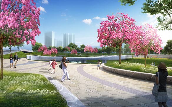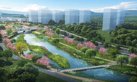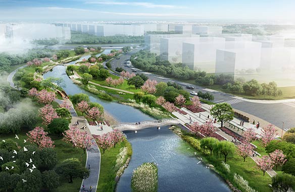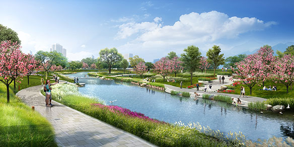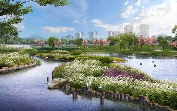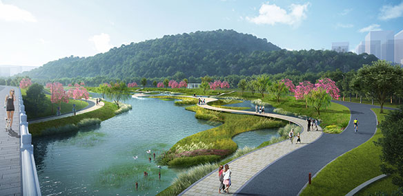 在龙岩溪流流域里,东肖溪是一条穿城而过的溪流,本身就独具特色;生态修复环境的营造,需要差异化,避免同质化,设计对现有的河道两岸护岸进行修复和绿化提升、生物监测点及设施进行品质提升,并贯通两岸,打造用于体验及享受自然的舒适公共空间,改善城市的生态环境,重焕区域动感与活力。因此打造一条彰显区域活力、助力城市生态与经济和谐发展的生态长廊,意义非凡。