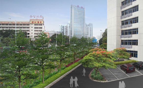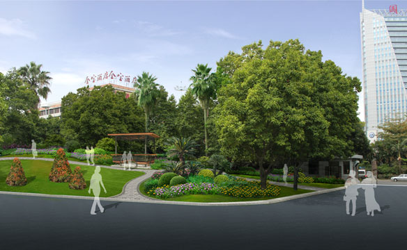 本次设计主要为重新改造场地内原有花池、树池、水景和雕塑小品,修建休憩亭、廊架、园路,增设附属设施使其面貌焕然一新。对主楼附属绿地进行增植,丰富绿化层次,增添景观效果。种植开花色叶植物,爬墙植物,提升彩化效果,弱化挡墙生硬感。重新规划院内停车场的位置,解决场地内停车位数量不足的问题。从整体上提升港务局绿化层次,完善休闲附属设施。