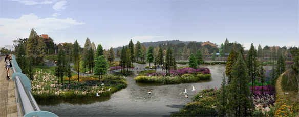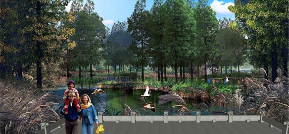 项目设计以“清溪流域之美,栈道湿地之景”为主题,秉持着尊重与利用”(尊重自然、享受自然,适应自然过程、充分利用当地材料)、“循环与再生”(保护与节约自然资源,坚持保护、减量、再用和循环与再生)、“共生与合作”(让自然做功,强调人与自然的共生与合作,减少设计的生态影响)的设计理念,有的放矢,重点解决现存的居民垃圾、毛石挡墙裸露、行洪受阻以及湿地植物配置不当等问题,力求利用生态的手法,改造河道湿地景观,建立河道净化湿地系统,构筑滨河游憩系统,着力打造一个市民可以脱掉鞋子,与河流、大自然亲近的场所,帮助市民重拾与自然亲近的人类本质。培养了人们对河流的归属感,对河流不再有障碍、恐惧和距离,能够更加近距离地接触水体、河流,开始享受和保护河流,使河道治理和湿地公园建设具有主题性、自然性、生态性等特点。