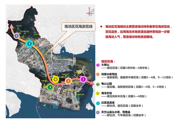 海沧区花海规划主要营造海沧特色春季花海游览线,赏花品色,应用海沧本地资源及园林景观进一步聚拢海沧人气,营造海沧特色旅游路线。