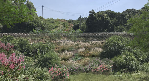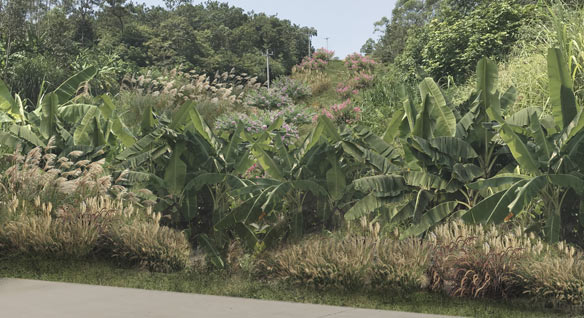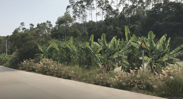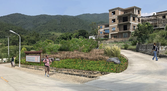 选用低管养、乡土的植物品种,局部重要节点点缀开花植物,合理配置,整体营造原生态、符合乡村特色的绿化氛围。