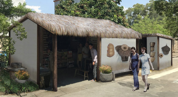 提取并应用前格村当地的文化"符号",打散重构,应用于景观小品、构筑物、标识系统等。
