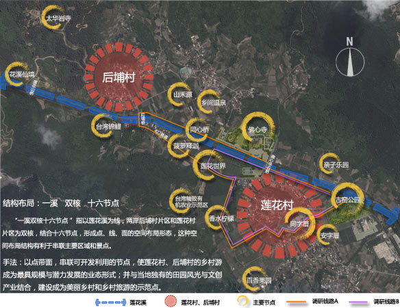 莲花溪小流域综合治理让古老的莲花溪恢复了灵动,她像一条玉带,把村庄、果园、莲池、古厝、老桥等连起来。莲花镇人大主席林素梅说,以莲花溪为主线,莲花村片区和后埔村片区为双核,串联周边同字厝、安字厝、古窑公园、莲花世界、佛心寺等,构成“一溪、双核、十六节点”的布局,拟创建星级景区。以点为基,串点成线,连线成面,通过综合治理,原本分散的众多自然景观、人文历史遗迹得以有机串联。比如,依托同字厝、安字厝等建筑群,改造提升古厝广场,今后将创办闽南学堂、文创基地;保护提升瓦窑遗址为古窑公园,传承闽南红砖文化;以台湾九品香水莲为特色的莲花世界,引入台湾有机农业作业方式,拟规划两岸莲荷文创园区,实现两岸相融、村企共建。