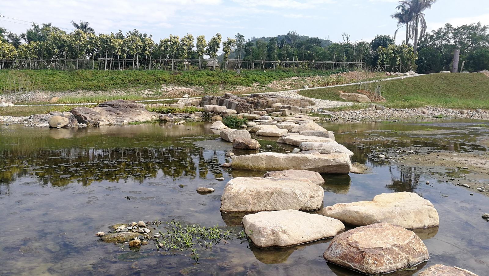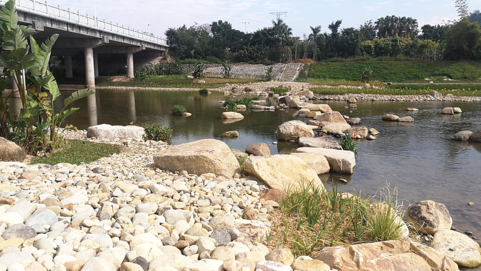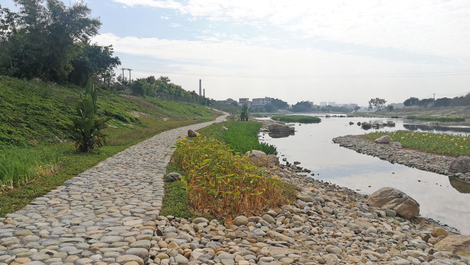 项目特色主要是营造自然边滩,种植水生净化植物,并结合卵石滩、卵石滤石床的天然净化水体功能,来改善河道水质;在河道内点缀高低错落的溪石和湿地生态岛,进一步改善鱼类与鸟类栖息环境;新增过溪汀步、生态滨水步道等内容,完善市民休闲、漫步、亲水等需求。