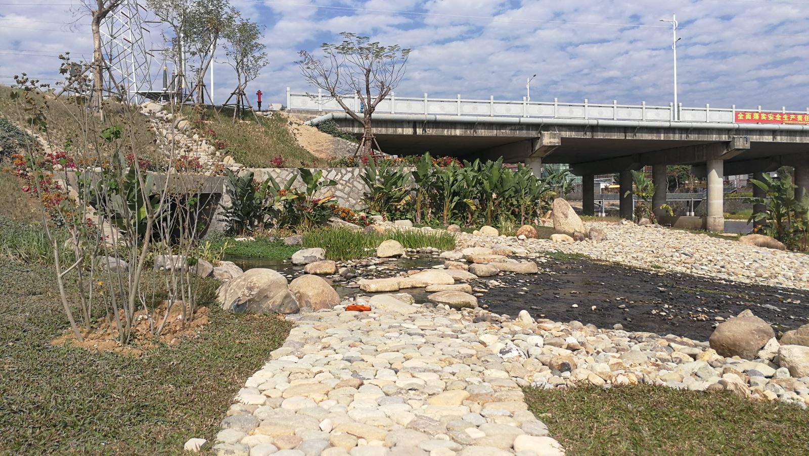 本工程以安全生态水系为建设目标,遵循尊重自然、保护环境的原则,将原有溪流的自然形态和景观要素作为项目的特色,以修复河流生态环境、改善水质、提升景观效果为出发点,通过岸线综合治理,驳岸卵石滩与生态岛的建设,改善河道湿地环境,创建生态湿地景观场所,进一步打造集小流域治理、人工湿地污水净化、生态保护、湿地观光、科普、休闲等于一体的安全生态水系景观。