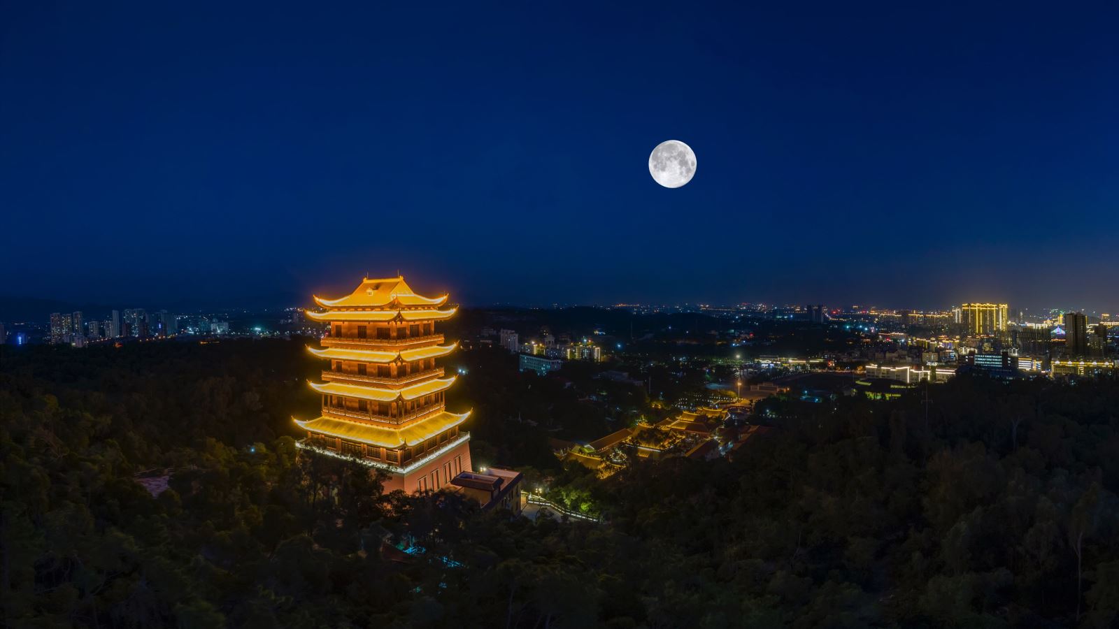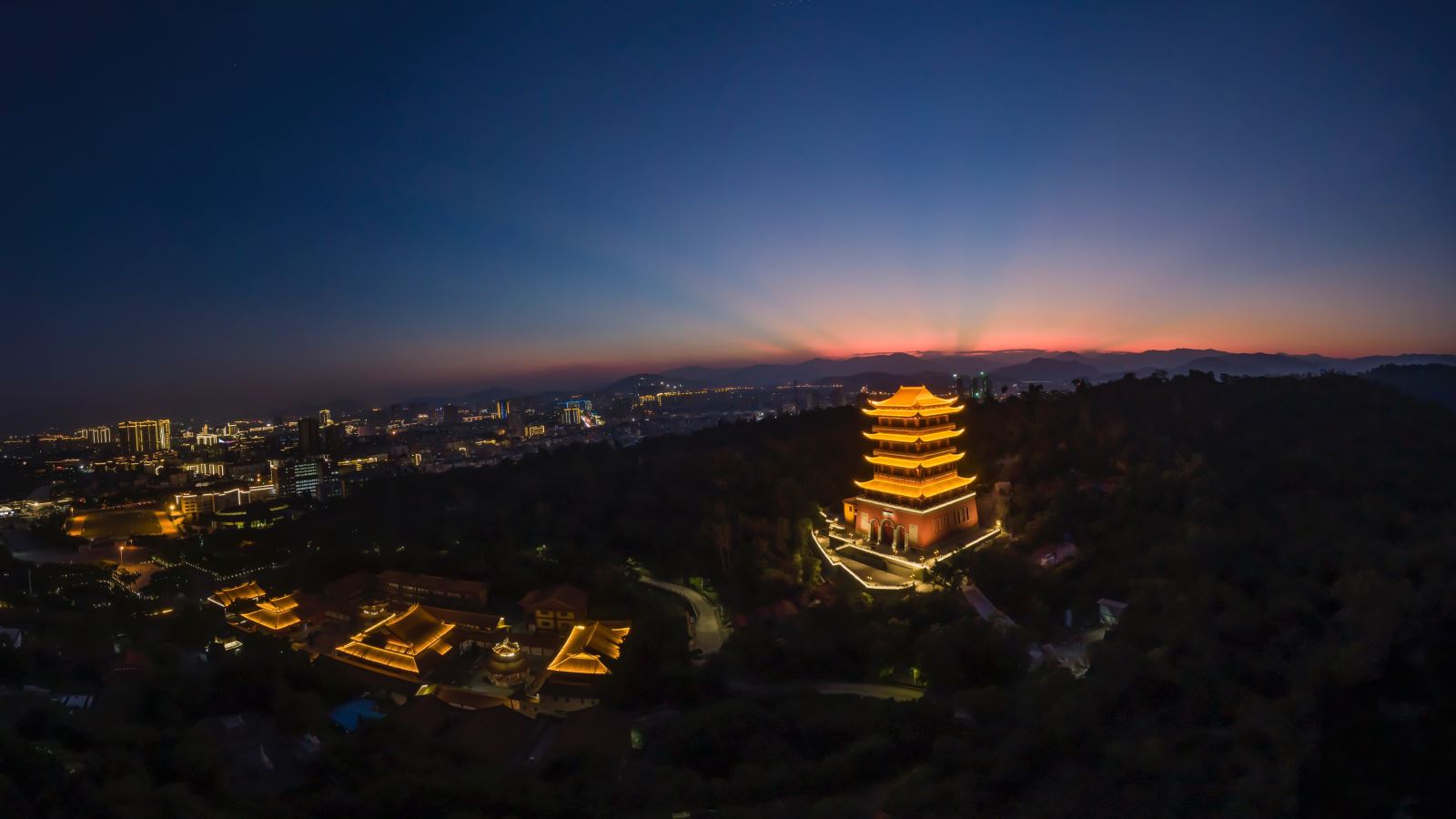 魁星阁夜景设计延续梵天古寺原有优雅、灵动的神韵,遵循“庄重雅净,和谐包容”的定位,采用“藏而不露”的手法,营造“简洁大方、自然舒适、和谐包容”的灯光意境,为厦门二十名景之“大轮梵天” 润色添彩。