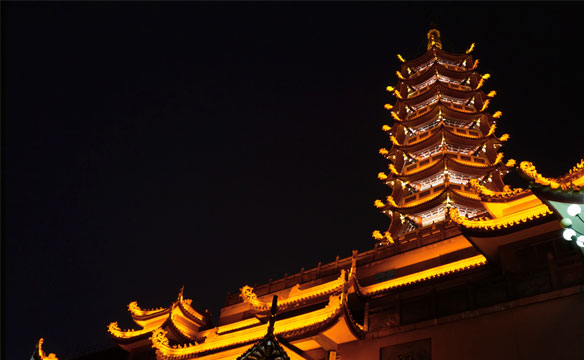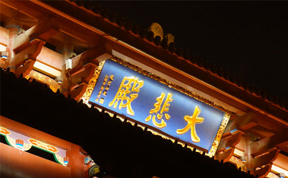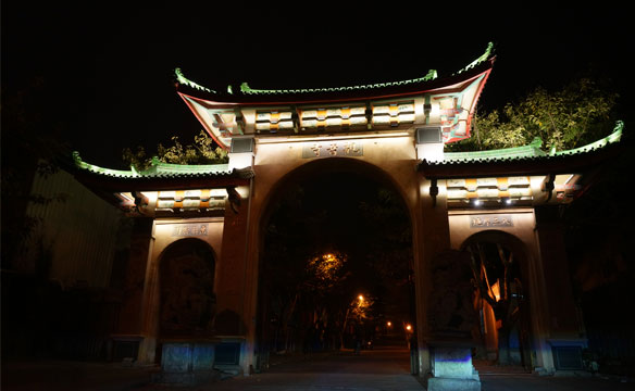观音寺位于仙岳山南麓,紧邻SM商业中心,地理位置优越。万佛宝塔高耸、大悲殿隐秘山林,通过夜景亮化,必将成为该区域的标志性景观。