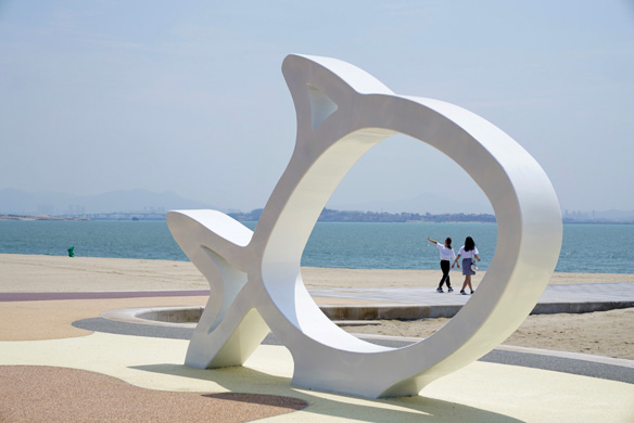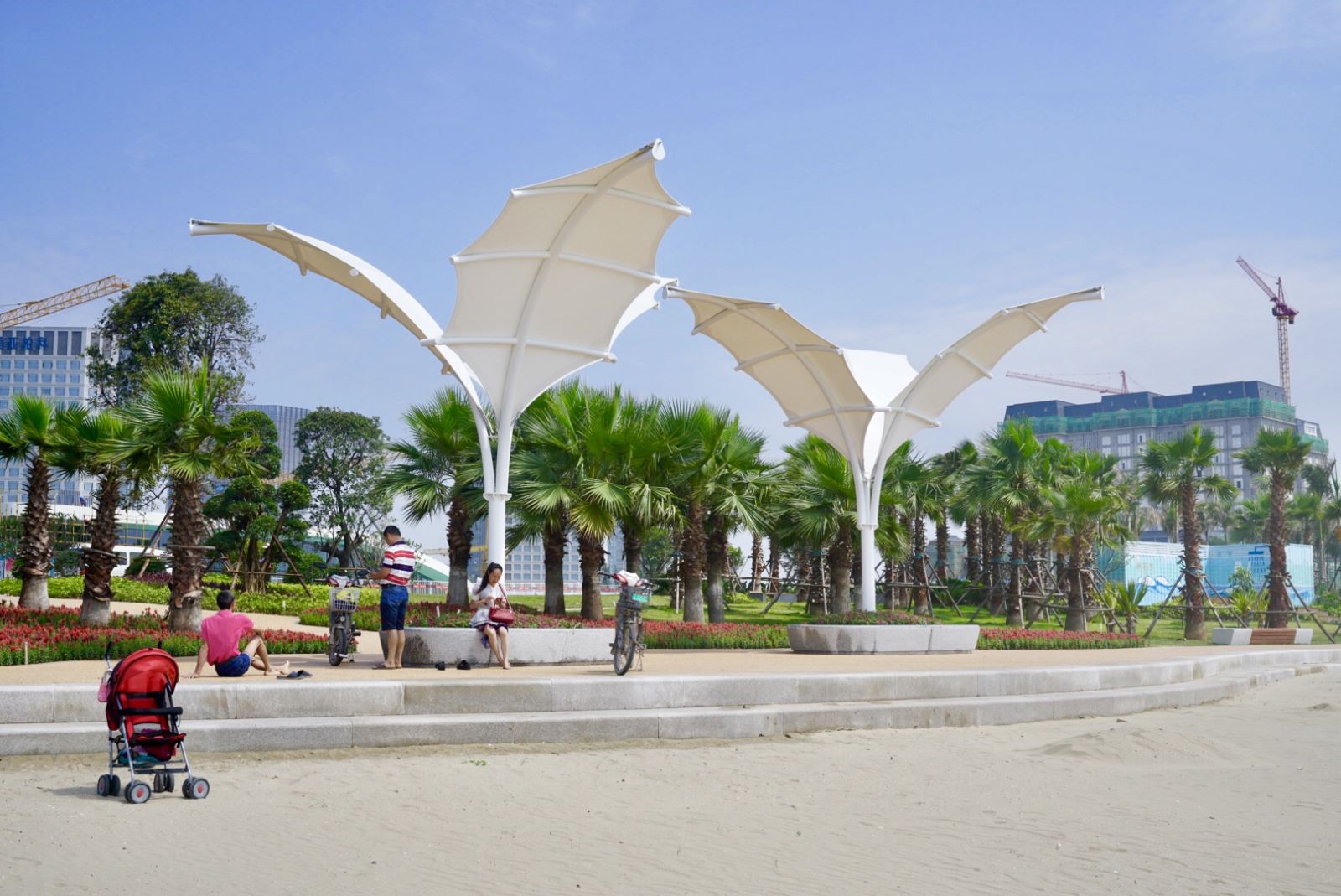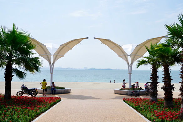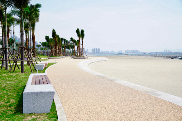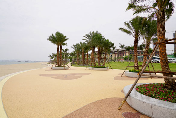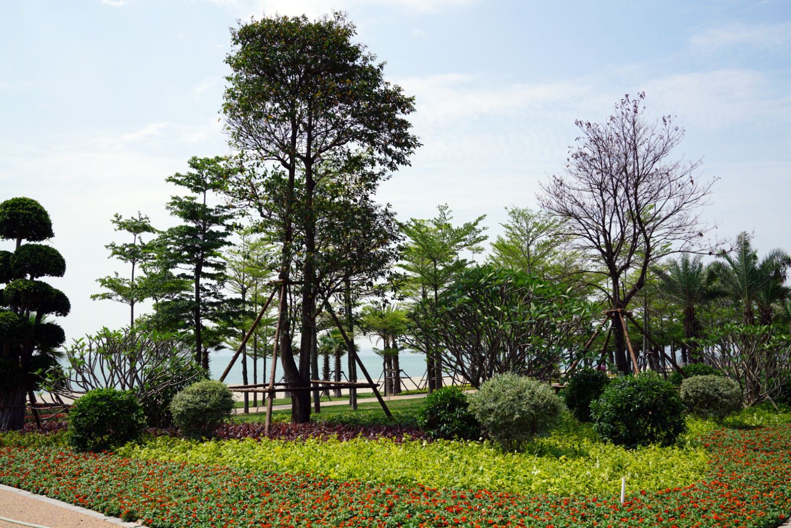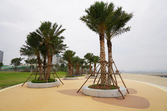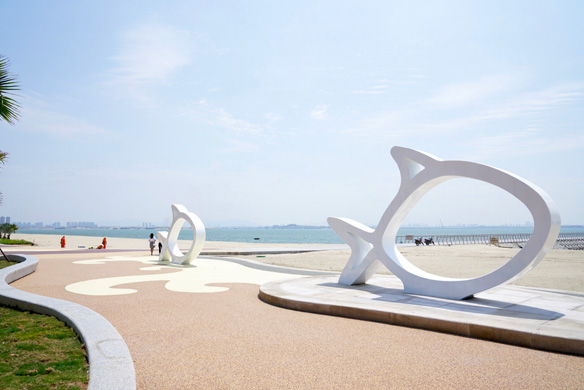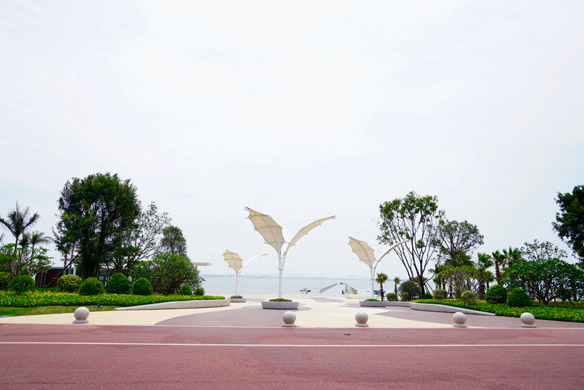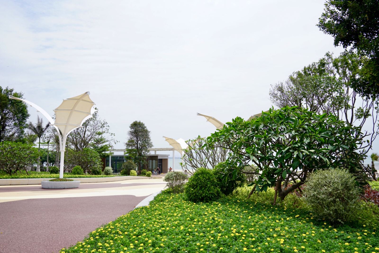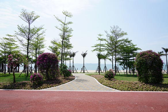项目提升范围从万丽酒店起至金都海尚国际止,全长2.4公里,以美峰公园段的滨海集散节点和金都海尚国际段的亲沙互动节点作为重点提升部分,新增集散广场、滨海步道及台阶、休闲平台,艺术类小品、膜结构廊架、树池、座椅等内容;对节点段绿化进行整体提升,新增花化彩化品种,补植遮阴大树、主景树,并将风格不协调的植物重新梳理。经过几个月的各参建单位的建设施工与技术指导,目前项目已基本完工,景观提升效果明显,获得市民高度认可。投入使用后,可以漫步于浪漫线滨海步道上,健身、赏景两不误。
