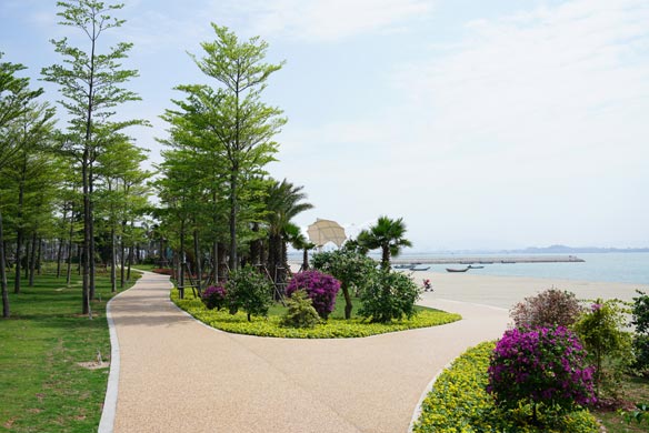 环东海域滨海旅游浪漫线绿化工程第二标段位于厦门市同安区环东海域,全长2.4km,绿化面积约23万平方米。现已完成乔木、灌木、地被种植、马尼拉草卷铺设、撒播草籽、花化彩化提升、聚氨酯路面、雨花石截水沟及绿化浇灌系统等建设内容,项目总投资约3462万元。目前,标段景观效果已初具成效。为了将环东海域滨海旅游浪漫线绿化工程第二标段打造成阳光度假海岸的精华段,形成对后期标段建设的示范作用,根据新城指挥部要求,对目前某些重要节点存在的景观设施配套与绿化美化方面的薄弱环节进行补充完善与提升。通过增加休闲节点、配套景观设施、强化绿化美化、植入海洋文化元素等措施,满足市民游客观光、休闲、运动及滨海休憩的需求。