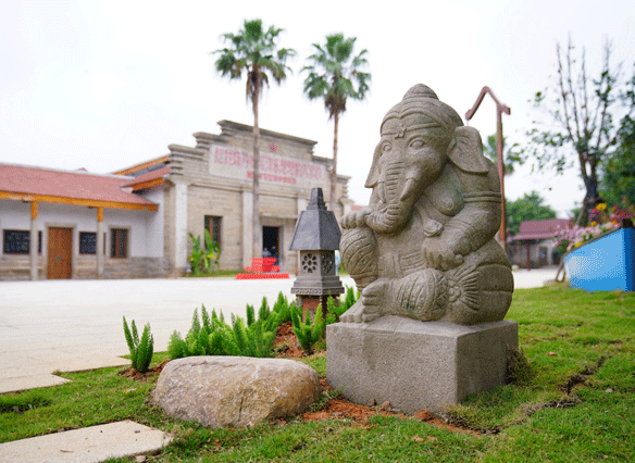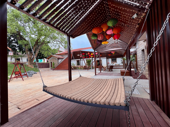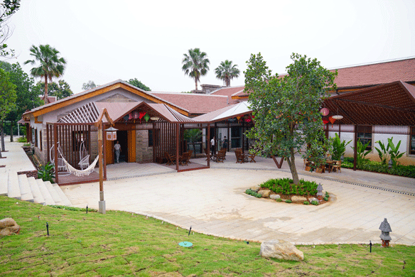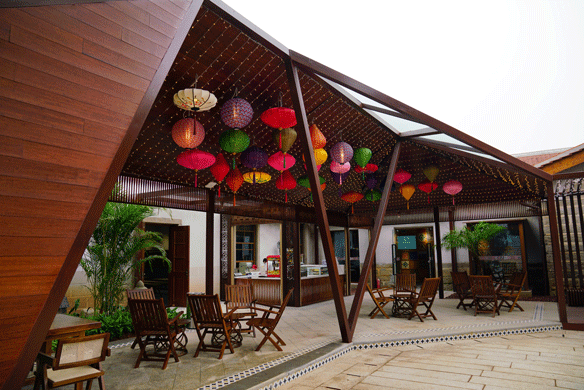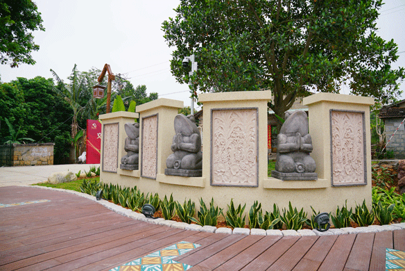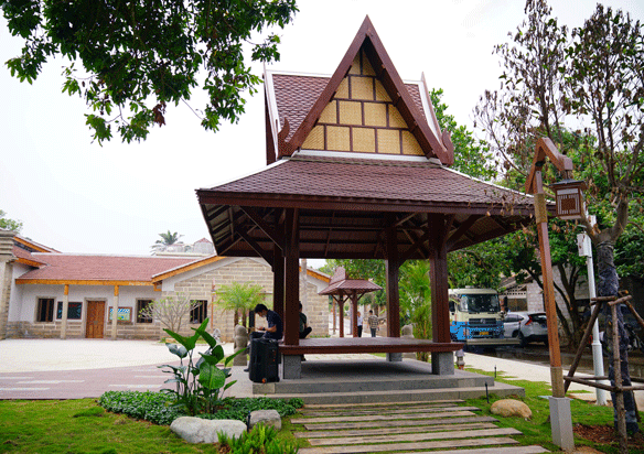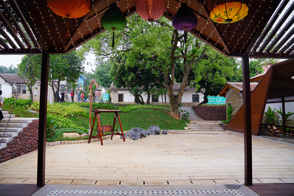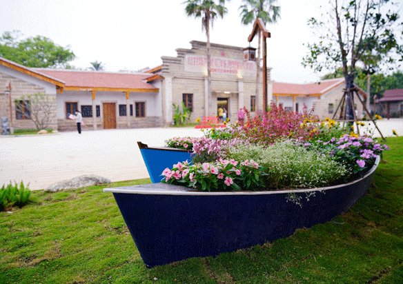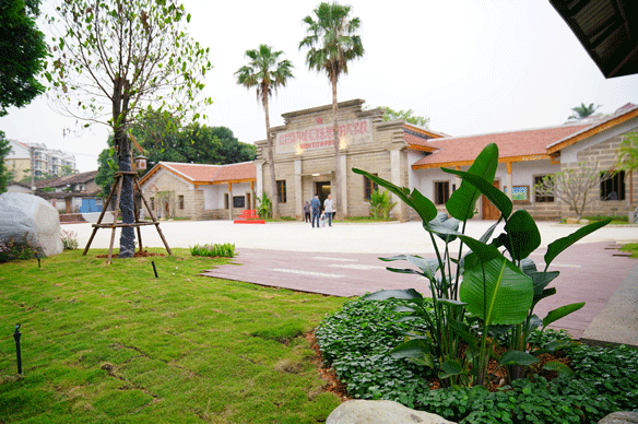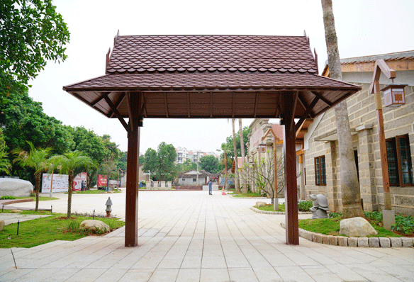 建筑修缮中保留少数原石墙及土质古瓦屋顶结构的老屋老墙,其运用老旧条石、红砖红瓦、木材等具有古朴、带有南洋风情特质的材料修复建筑,致力打造修旧如旧的归侨史迹馆。景观方案中,借鉴建筑条石、红砖红瓦、花砖等选材,与整体建筑相协调呼应,打造质朴、具有南洋风情的配套景观。