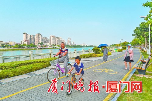 “慢行系统的建设,是一个不断摸索并完善的过程。对于投用部分,居民们评价很好,也提出了一些建议。因此,我们在三期的设计建设过程中,采纳了一些居民的建议。”同安区水利局水利管理站副站长范金武说,三期项目仍按高标准建设,不单有自行车道、人行道和绿化提升,还包括凉亭、廊架、照明夜景、背景音乐、休息驿站,以及河道清淤、湿地营造、亲水平台等安全生态水系建设的内容。